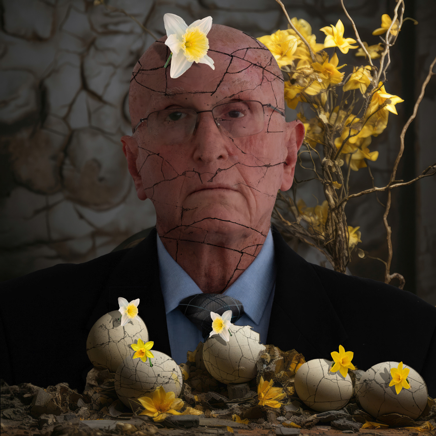 Diagnosis: Narcissism - Even vanity must hatch from something — daffodils bloom from fractured eggs of self.