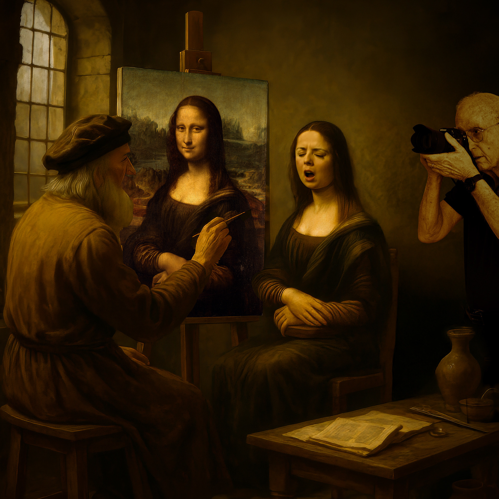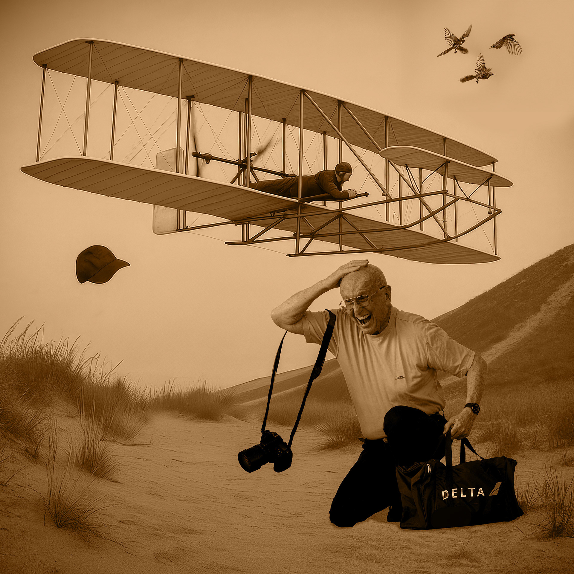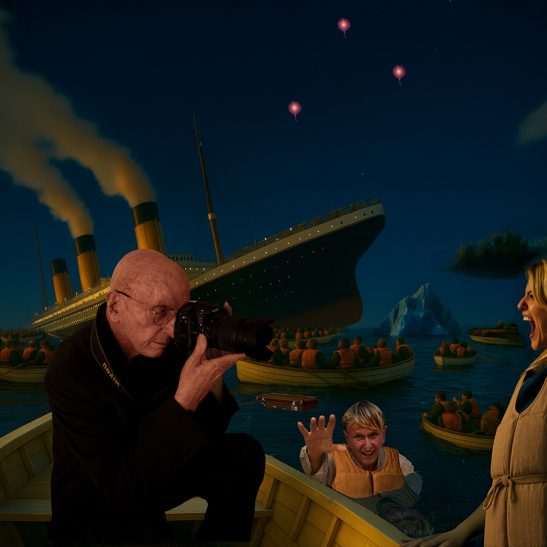 The Time Traveler’s Diary documents imagined moments in history through the lens of a wandering observer: myself. Whether photographing the Wright brothers’ first flight, witnessing the Titanic’s final moments, or capturing Dalí painting with a melting camera, I am simultaneously protagonist, witness, and paradox.